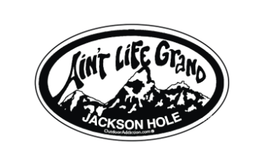 “Ain’t Life Grand – Jackson WY” mini bumper sticker, 1″ x 5″